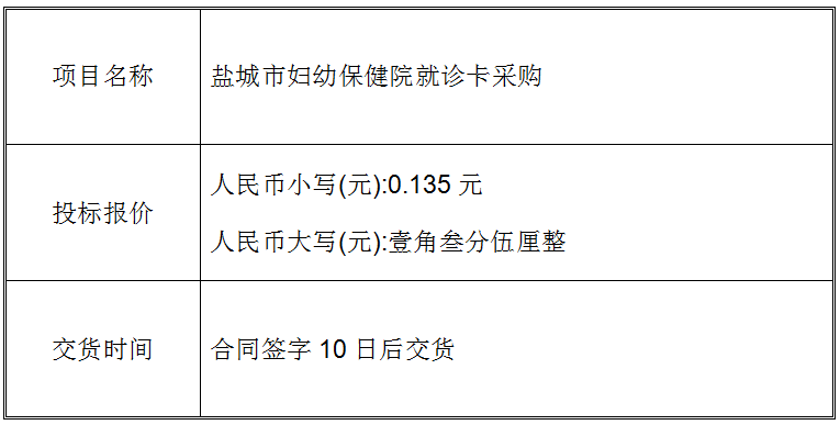 经医院院办会研究,决定对就诊卡的采购进行重新招标。本次招标共有衢州市衢江区得卡电子商品商行、杭州祥隆智能卡有限公司、杭州大成实业有限公司三家单位参与投标,经医院评委会的评审,就诊卡的采购由杭州祥隆智能卡有限公司中标。评标过程,由医院监察室全程监督,现予公示。