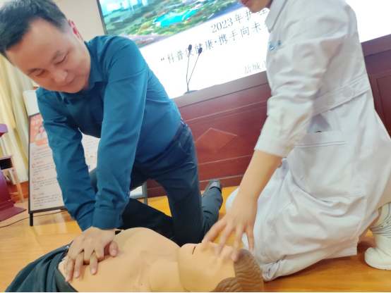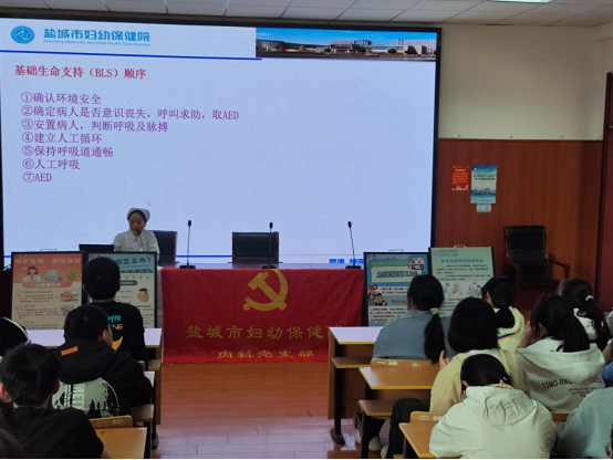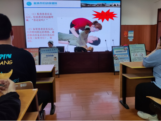 5月11日中午,中共盐城市妇幼保健院委员会内科支部在不影响学校正常教学秩序的情况下,利用师生午饭后休息时间,在学校会议室举行心肺复苏和海姆立克法急救知识科普活动。