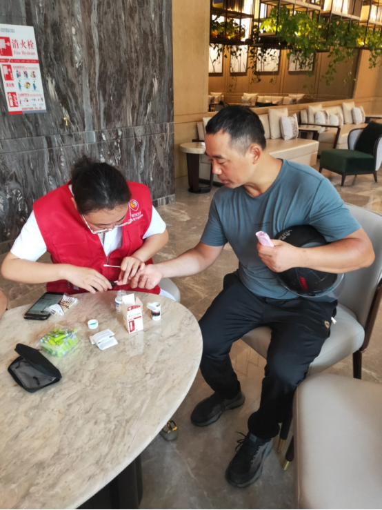 8月3日上午,盐城市妇幼保健院老干部志愿者服务队赴盐南新都聚龙湖社区开展义诊等系列活动。由于高温天气,本次活动地点安排在室内举行。通过现场医疗保健咨询,免费测试血压、血糖,发放健康教育资料等方式,为近百名附近居民提供了服务,获得居民好评。
