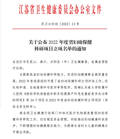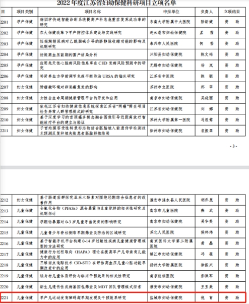 根据《关于公布2022年度省妇幼保健科研项目立项名单的通知》(苏卫办妇幼[2022]13号),我院儿保科副主任倪育主持的《早产儿运动发育障碍超早期发现及干预效果研究》项目喜获2022年度江苏省妇幼保健科研项目资助立项。