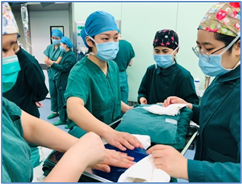 在手术方案确定后,手术室护理团队迅速开始行动,着手准备手术器械和药品。穿上手术衣,术中和手术医生密切配合,坚定的眼神没有一丝紧张和畏惧,3台手术顺利完成,护士们专注的神情才得到了放松,喜悦在眉间传遍。