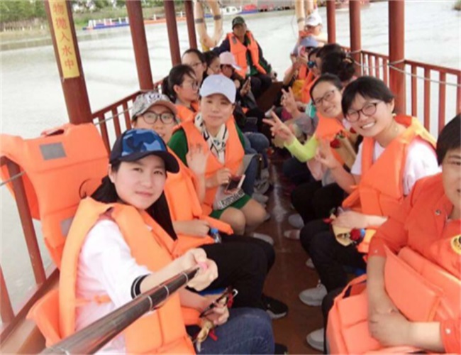 在美丽的阜宁七彩公园里,姐妹们被分成两组,进行着趣味刺激的拓展游戏项目。这是一个体力与脑力相结合、个人挑战和团队合作相结合的过程。大家在享受自然风光的同时,更是感受到团队的力量、集体的智慧,身心得到了彻底放松。