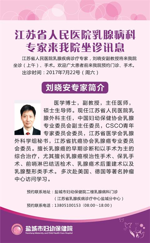 江苏省乳腺疾病诊疗中心盐城分中心专家出诊信息