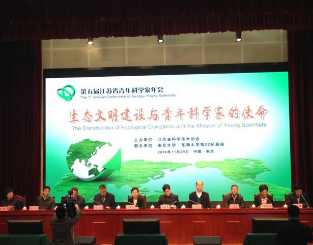 11月29日上午9点,第五届江苏省青年科学家年会在南京召开,本次年会主题为“生态文明建设与青年科学家的使命”,省委常委、宣传部长王燕文出席开幕式并为获奖青年科技工作者颁奖,省政协副主席、省政府党组成员徐南平在开幕式上讲话。