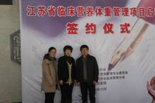 市妇保院营养科孟民、陈春霞与省医院临床营养专业委员会主任李群在签约版前合影