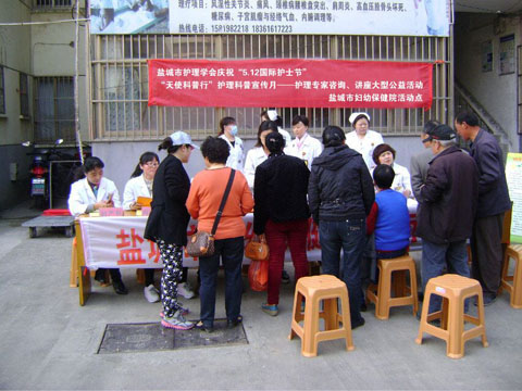 为庆祝“5.12”国际护士节的到来,积极响应市护理学会关于开展“天使科普行”护理科普宣传月活动的倡议,4月25日上午,盐城市妇幼保健院的护理人员走进经济开发区大兴小区,为该区居民举办了护理专家咨询、讲座大型公益活动。