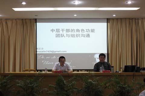 7月18日,我院举办《中层干部的角色与功能:沟通与团队》专题培训,此次培训特别邀请了台湾政治大学法学硕士林正全教授专题主讲,院领导班子成员、中层管理干部、各学科带头人及后备人才等120人参加了此次培训。院长、党委书记宋文亚主持了开幕式并致辞。