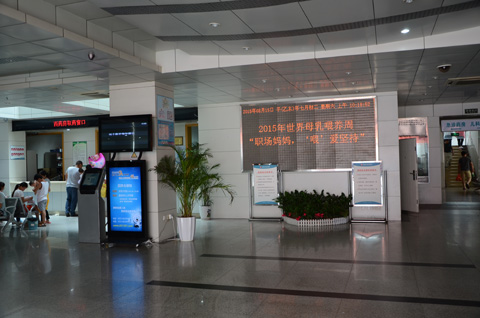 活动期间在门诊大厅、产科门诊等地方利用电子显示屏、宣传展板,围绕“职场妈妈,‘喂’爱坚持”的主题进行科普宣传;产科全体医护人员工作服胸口粘贴主题胸贴,同时在产科门诊和病区发放《母乳喂养宣传手册》,在入院后及分娩后均进行强化宣教,让每一位孕产妇都能知道母乳喂养的好处。孕妇学校举办以“职场妈妈,喂爱坚持”为主题的专题讲座,讲解职场妈妈们如何坚持母乳喂养以及注意事项,耐心解答了准妈妈们的问题,为准妈妈们树立坚持母乳喂养的信心。