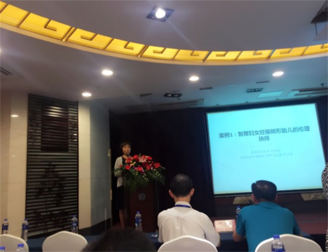 我院医学伦理委员会在副主任委员李芹副院长的带领下参加了此次学术研讨会。会上,李芹就临床上一位智障妇女妊娠畸形胎儿的伦理道德进行现场交流讨论。