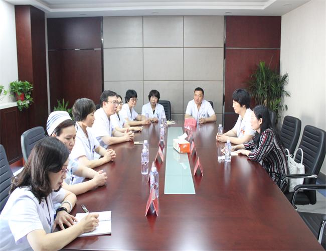 7月4日,射阳二院杨晓玲院长一行来我院参观。院长卞洪亮、副院长李芹陪同,办公室、医务科、护理部、科教科、妇科、产科、产前诊断中心负责人参加工作座谈。