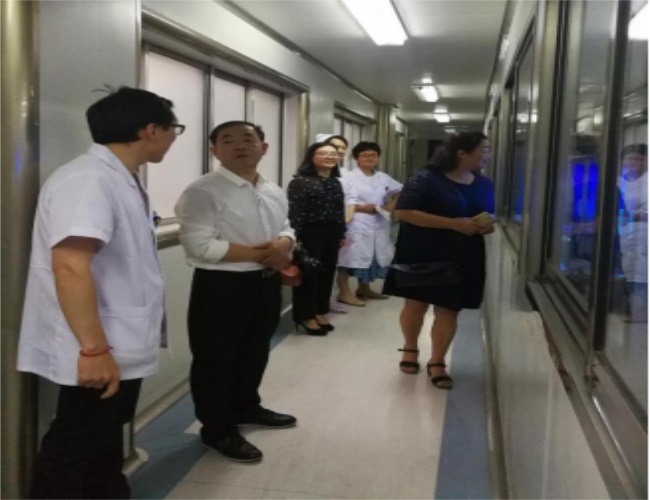 下午3点,考察团一行来到毓龙路本院保健楼四楼会议室进行现场交流,我院院长卞洪亮、副院长陈爱军、秦新勇、刘伟东,以及相关职能科室负责人陪同。会上,双方领导就医院发展现状进行了交流。会后,铜川妇幼一行在刘伟东副院长的陪同下,先后参观了我院保健科室、生殖医学中心、一体化产房以及新生儿科。