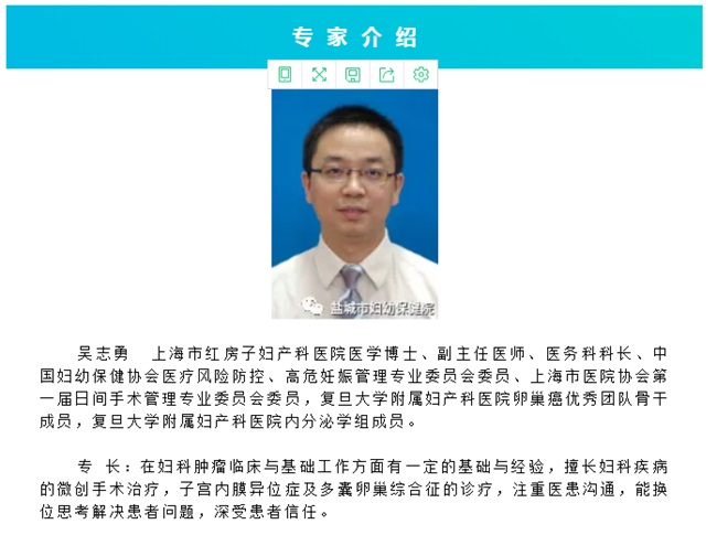 专家有约丨3月23日上海市红房子妇产科医院妇科内分泌专家吴志勇博士来我院坐诊