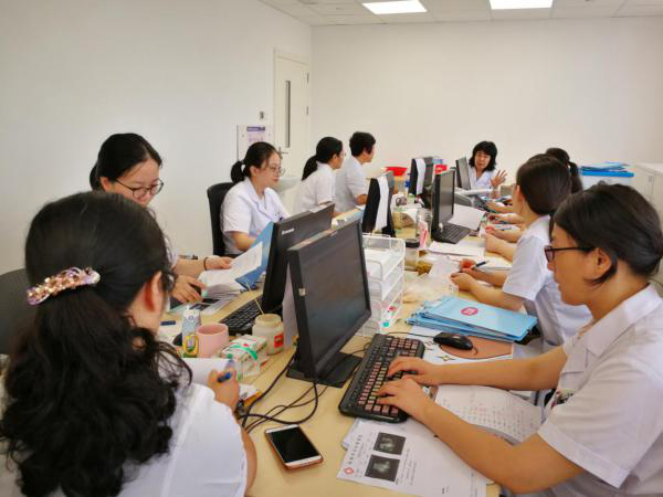 上午,任教授来到二楼妇科内分泌门诊进行专家坐诊,并为患多囊卵巢、阴道壁囊肿、子宫不典型增生、生殖道畸形(先天性无子宫无阴道)等疾病的12名患者看诊。每次任教授来院坐诊总会受到前来求医者的一致好评,无论是精湛的诊疗水平还是耐心细致的诊疗氛围或态度。于红教授在产科进行了查房,并对10例疑难病例进行了讨论。