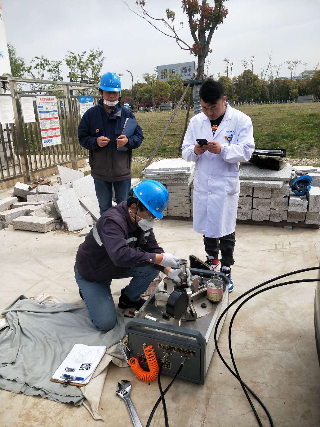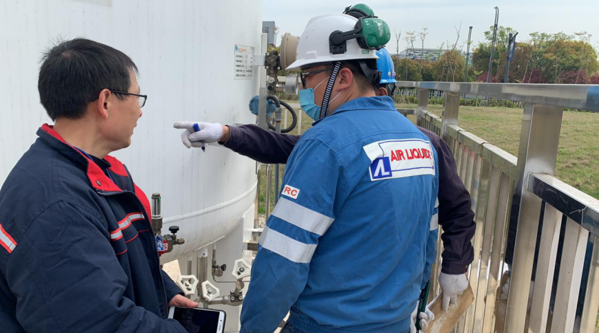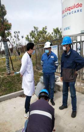 4月16号上午,液态氧站厂家工程师陶工与其一行人对我院的液态氧站安全阀进行年度在线效验。设备科相关负责及其他工程师都一并到现场学习了解安全阀的使用、保养、校验、拆卸等知识。