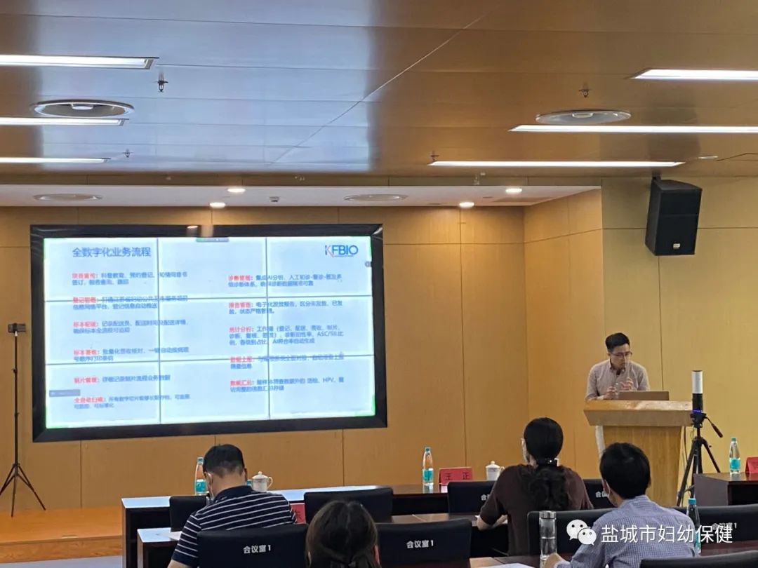 江丰生物市场总监邓良先生介绍了盐城市“市级人工智能宫颈癌筛查中心项目”实施方案,从管理系统、数字扫描、会诊平台、制片染色到智能分析,利用人工智能和互联网技术,能有效提升全市宫颈癌防控的技术能力,全面提高全市两癌筛查水平及筛查效率。