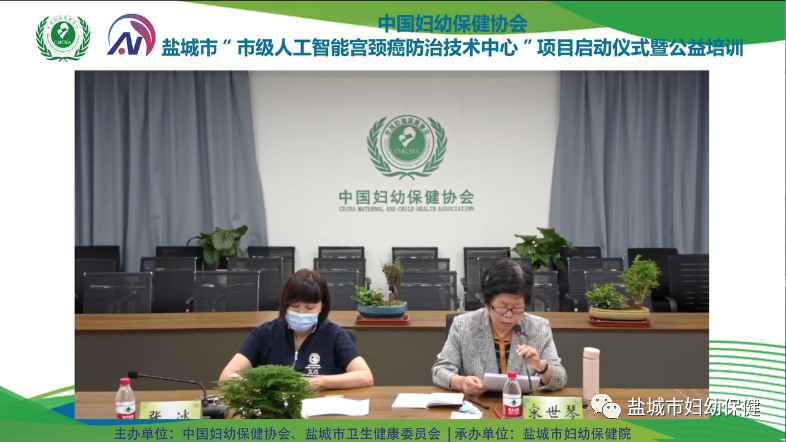2022年5月28日,盐城市“市级人工智能宫颈癌防治技术中心”项目启动仪式暨公益培训在盐城市妇幼保健院顺利召开。本次培训由中国妇幼保健协会、盐城市卫生健康委员会主办,盐城市妇幼保健院承办,以网络连线方式进行,主会场设在盐城市妇幼保健院,分会场设在中国妇幼保健协会网络会议室。中国妇幼保健协会常务副会长兼秘书长于小千、副会长宋世琴、AI项目办公室主任董燕,徐州市妇幼保健院副院长王海舰,盐城市卫生健康委员会副书记、副主任王正,盐城市妇幼保健院党委书记朱向军、院长卞洪亮、副院长贺成光出席启动仪式。各县(市、区)卫生健康委妇幼科长、妇幼保健院(所)长、群保(妇保)科主任参加启动仪式暨培训。