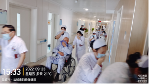 医护人员及时疏散病区行动不便的病员,利用推车、轮椅,把病员疏散到避难间内等待救援,引导轻病人及其家属,主即用湿毛巾捂住口鼻,低姿疏散通道撤离到住院部大门外安全地带。