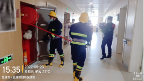 按照盐城市消防支队统一布署,结合医院实际,为保障医护人员和患者及其家属的生命和财产安全,提高广大医护人员灭火技能和应急疏散能力,在紧急情况下,能快速处置初起火灾事故,及时有效地扑灭火灾,迅速疏散人员,减少火灾造成的财产损失,保障人身生命安全。2022年9月23日下午3时,我院开展灭火自救应急演练,地点在住院部东八楼,假设火灾报警系统信号传送火警,本次灭火应急预案演练总指挥由保卫科负责人担任,参加人员由各科室医护人员、应急救援人员及安保人员组成。