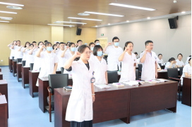 授书仪式结束后,医务科科长邵艳和护理部副主任程群芳分别带领新进医技人员和护理人员举行了庄严的入职宣誓仪式,坚定了各位新同事的理想与信念。